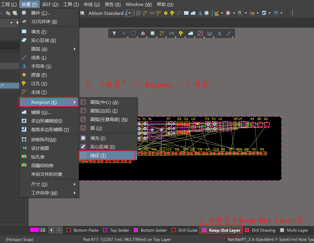 注意:必须要将输入法切换为英文输入法,只有在英文输入法下,在画板子的线时才能走快捷键走圆弧或者直角。