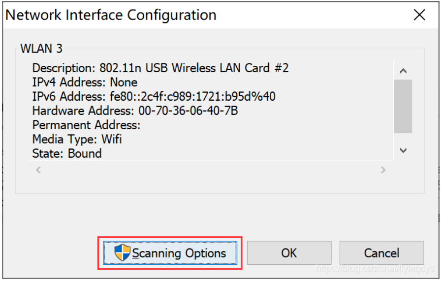 -双击需要设置“Monitor Mode”的无线网卡,点击“Scanning Options”