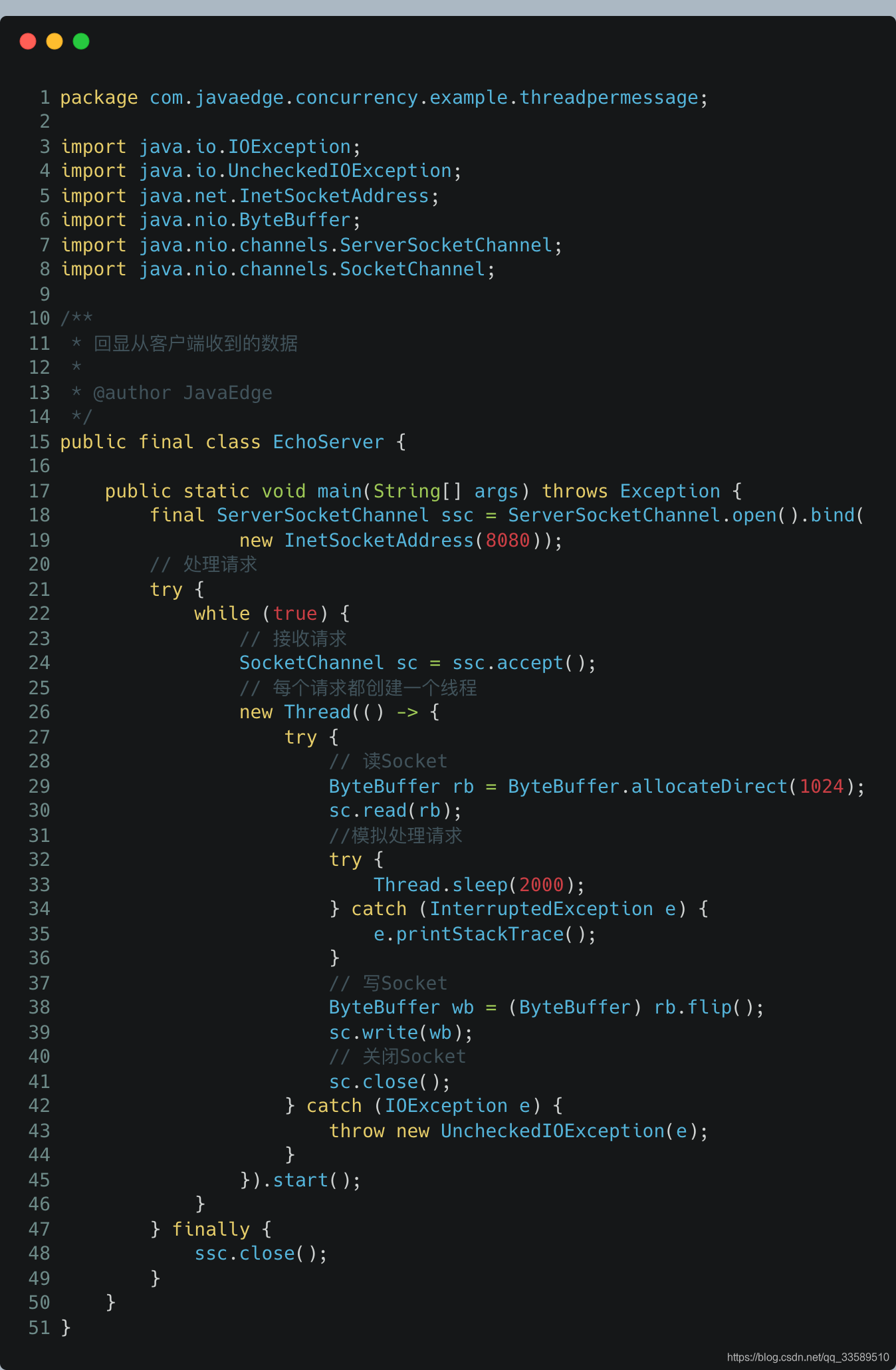 但该实现不可能在实际生产使用,因为Java线程实在是个重量级对象: