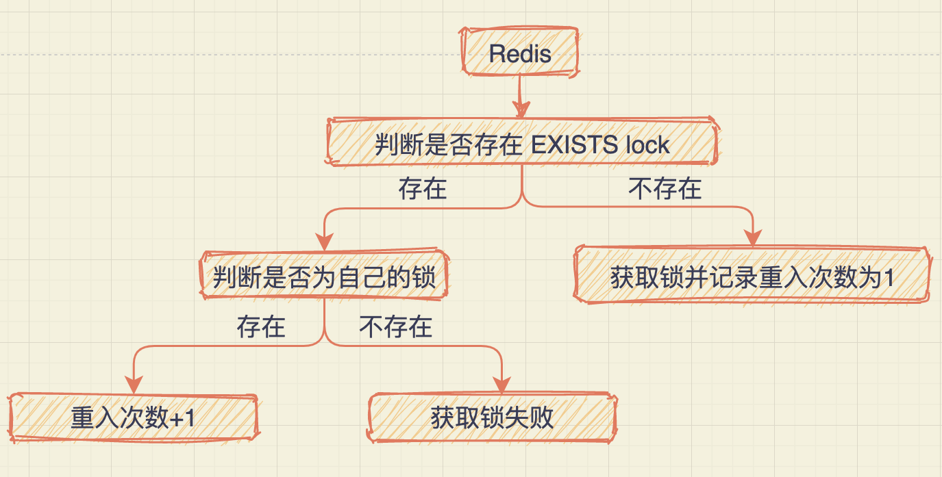 - 存在,说明有人获取锁了,继续判断是不是自己的锁,即判断当前线程id作为hashKey是否存在:HEXISTS lock threadId