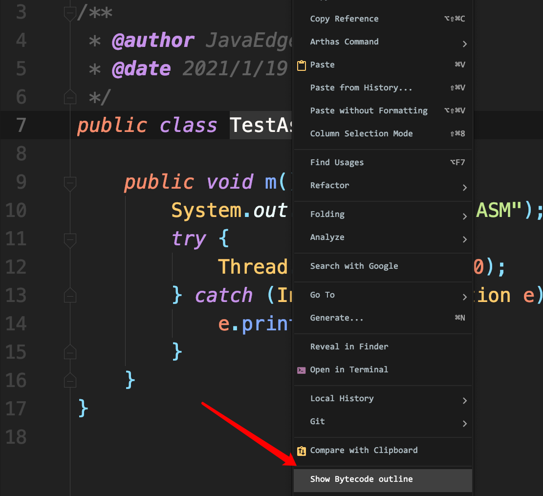 IDEA使用插件 asm outline 查看 asm 如何生成该类。