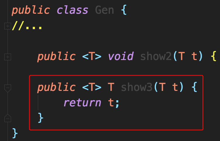 第一个 <T> 定义当前我有一个泛型变量类型,类型名使用T来表示第二个 T 表示show3方法返回值类型为T,其中的<T>只是为了在函数声明前,定义一种范型;因此下面的函数也是合法的: