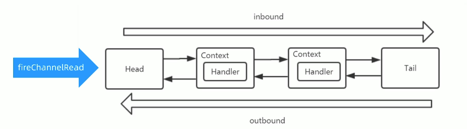 数据在pipeline中所有的handler的channelRead()执行过程。