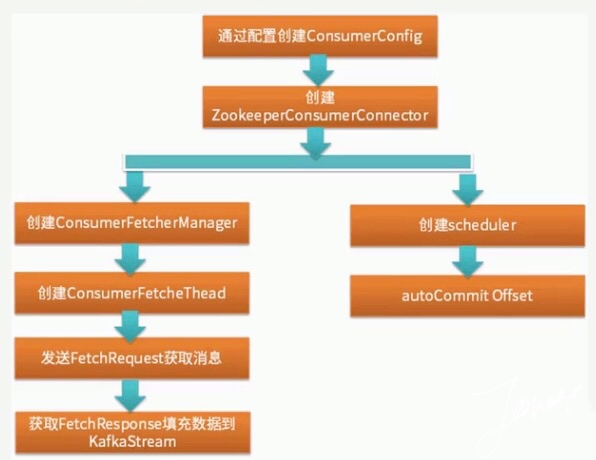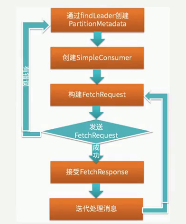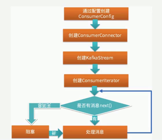 - 组消费模式由Kafka服务器端处理各种错误,然后将消息放入队列再封装为迭代器(队列为FetchedDataChunk对象),客户端只需在迭代器上迭代取出消息
