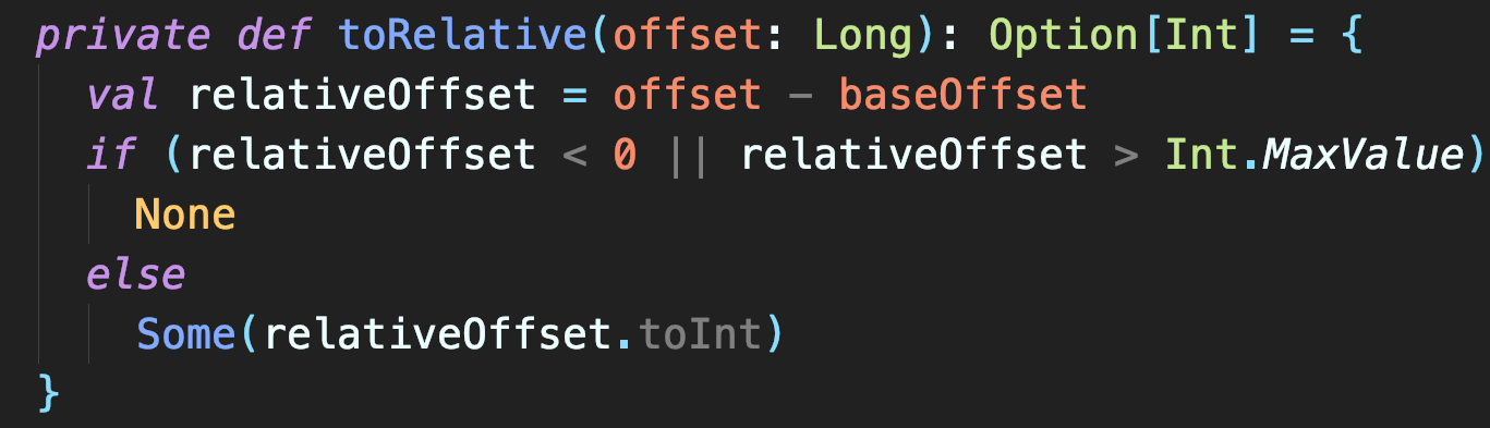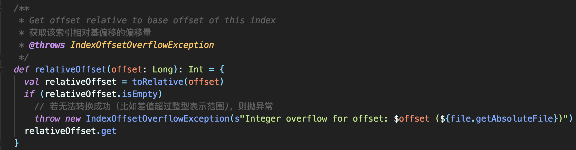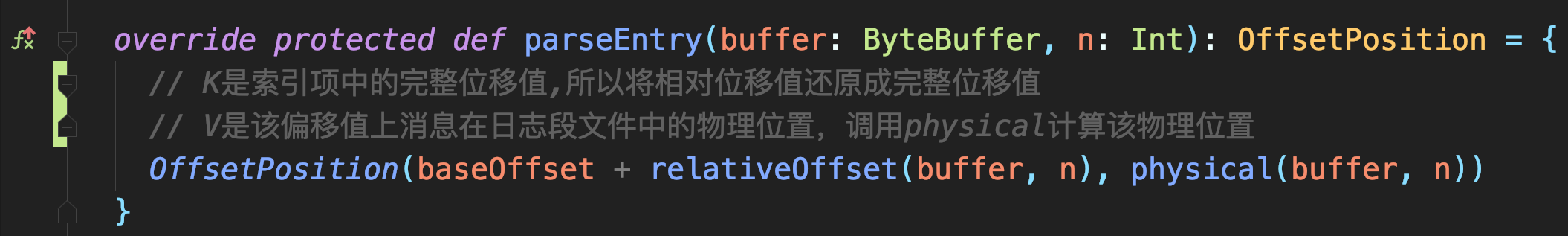 读取OffsetIndex时,还需将相对偏移值还原成之前的完整偏移。