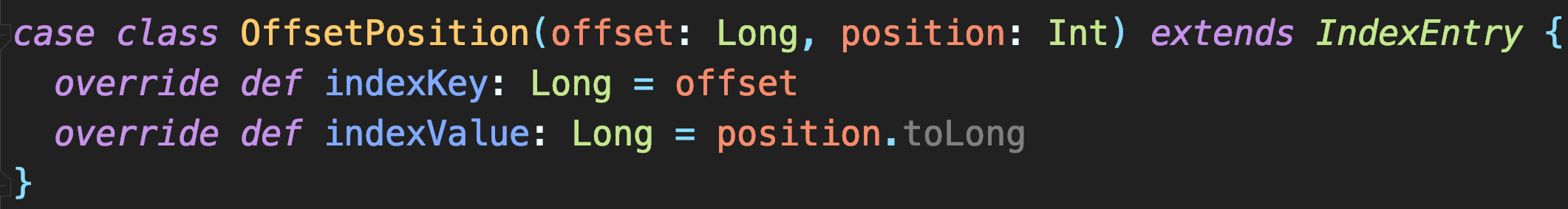 不同索引类型保存不同的 K.V 对。OffsetIndex的K即消息的相对位移,V即保存该消息的日志段文件中该消息第一个字节的物理文件位置。