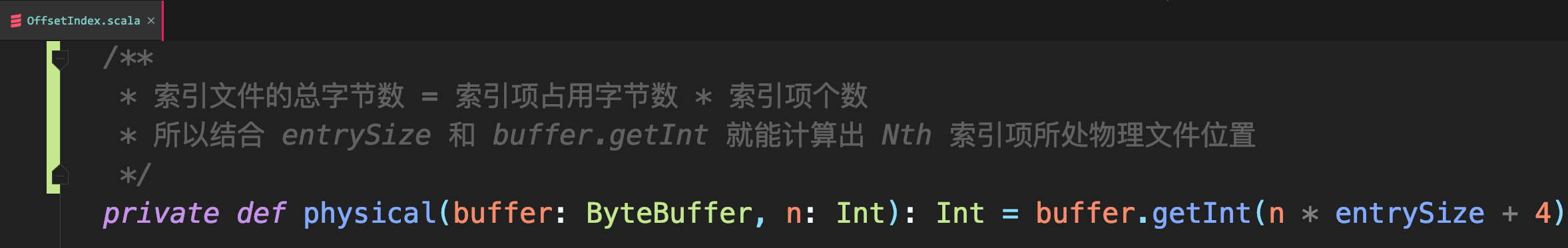 OffsetIndex的entrySize就是8,如OffsetIndex.scala中定义的那样:
