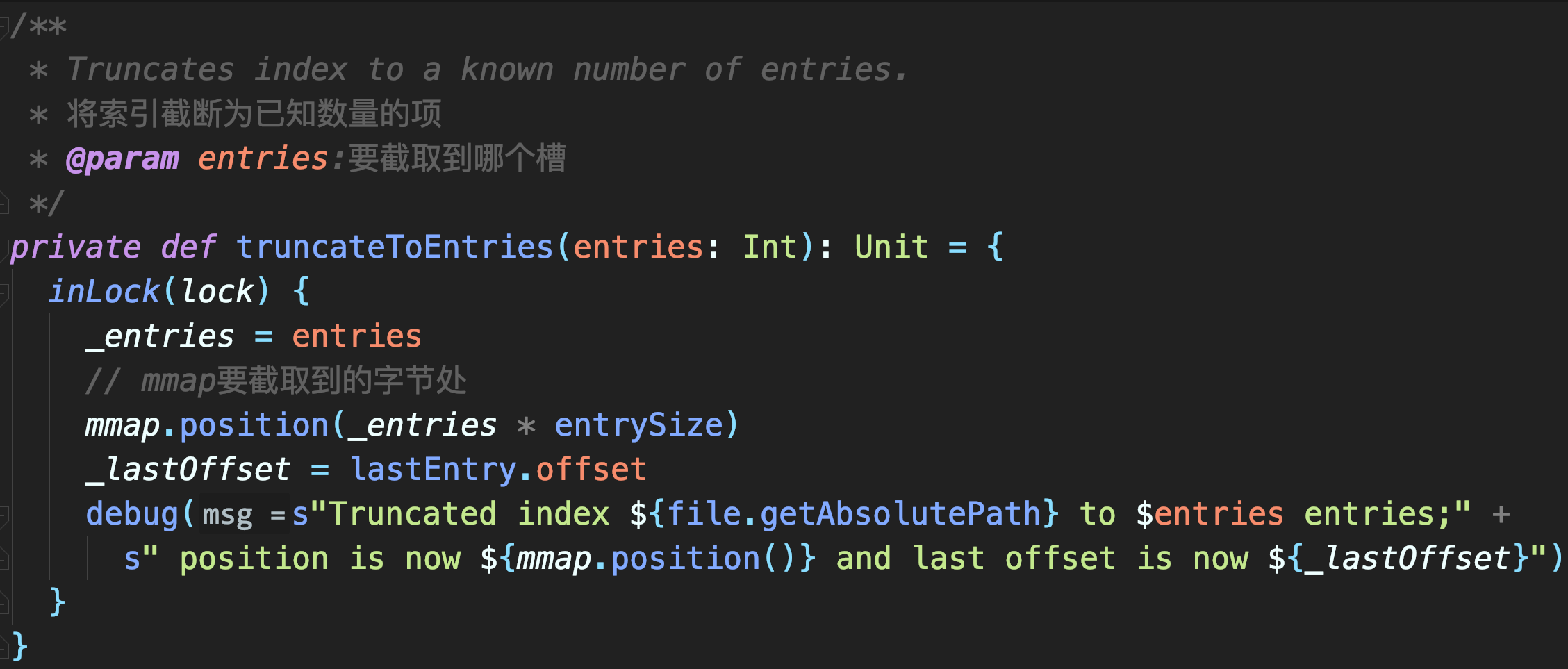 将索引文件内容直接裁剪掉部分。比如,OffsetIndex索引文件中当前保存100个索引项,现在只想保留最开始40个索引项。
