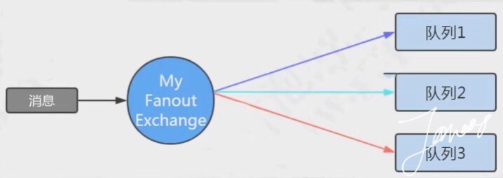 - 发送到交换机的消息都会被转发到与该交换机绑定的所有队列上