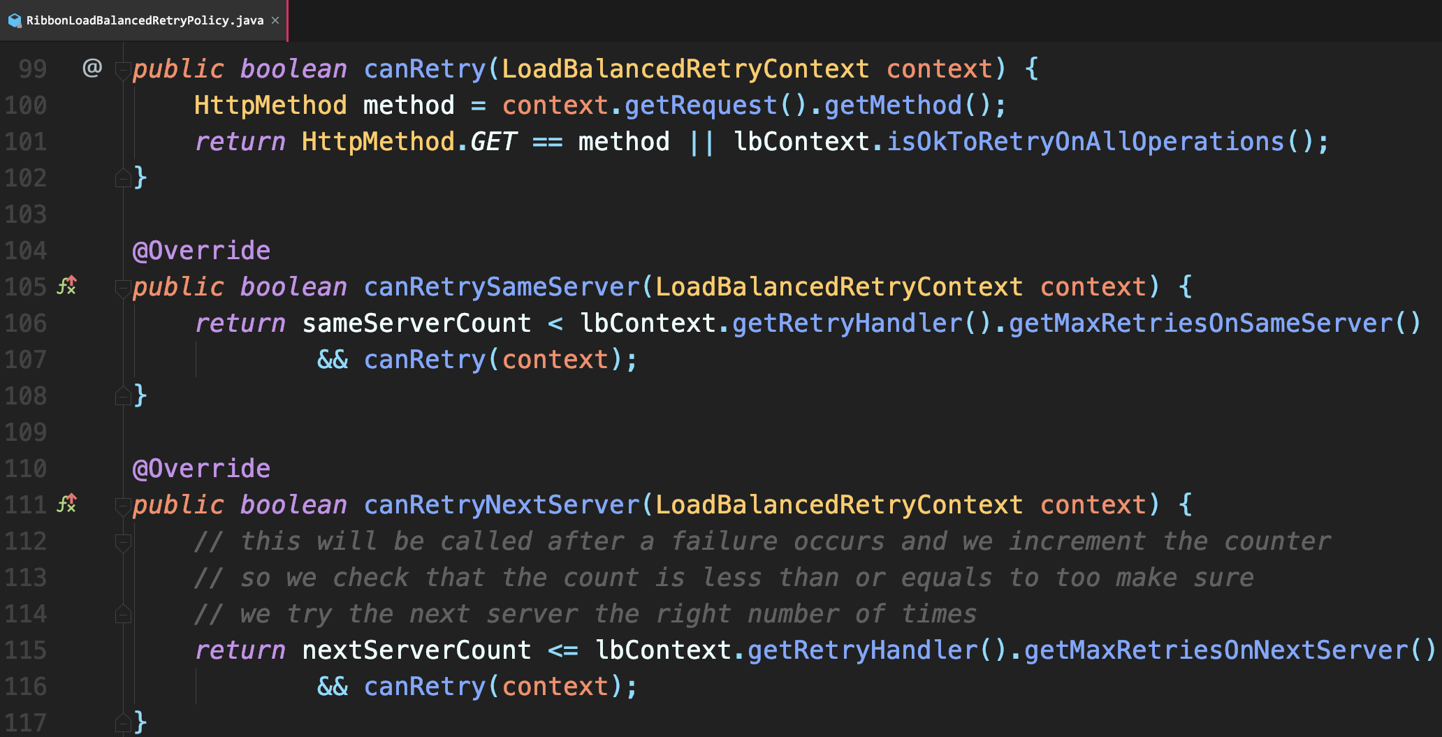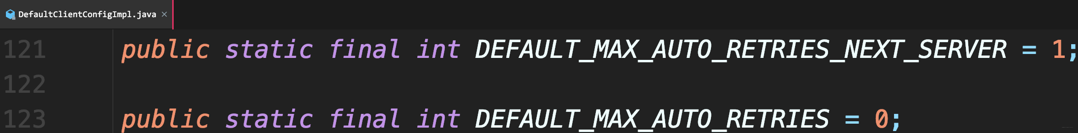 查看Ribbon源码,MaxAutoRetriesNextServer参数默认为1,也就是Get请求在某个服务端节点出现问题(比如读取超时)时,Ribbon会自动重试一次: