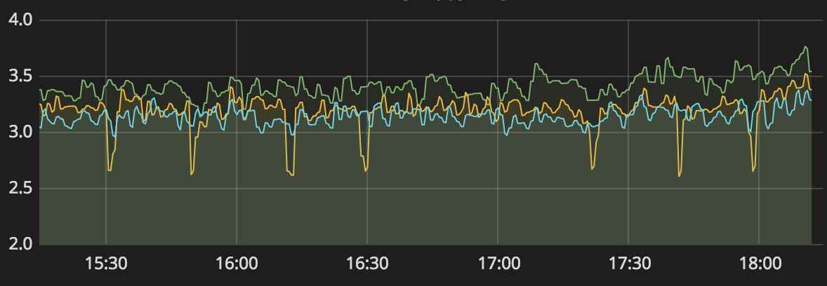 一般是用来监控变化趋势的,比如下面的曲线图展示了监控对象随着时间推移的变化趋势,可以看出来这段时间内变化比较小,曲线也比较平稳。
