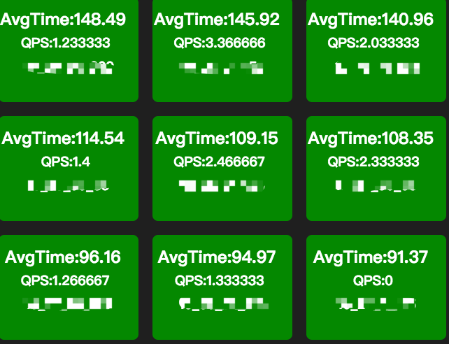 主要做一些细粒度的监控,比如下面这张格子图代表了不同的机器的接口调用请求量和耗时情况,展示结果一目了然。