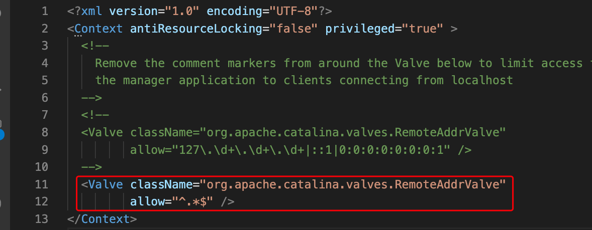 <Valve className="org.apache.catalina.valves.RemoteAddrValve" allow="^.*$" />
