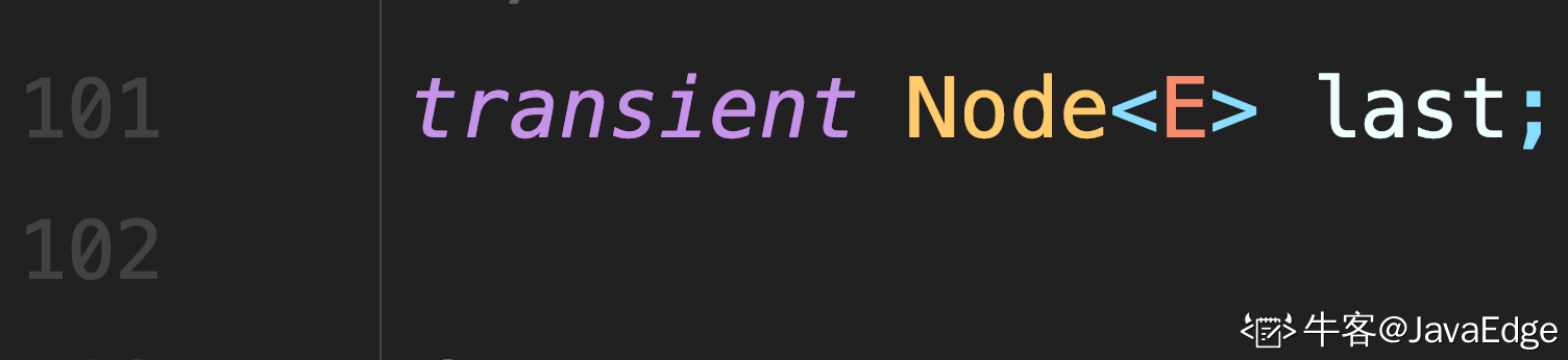 尾节点的指针.不变性约束条件:(first == null && last == null) || (last.next == null && last.item != null)