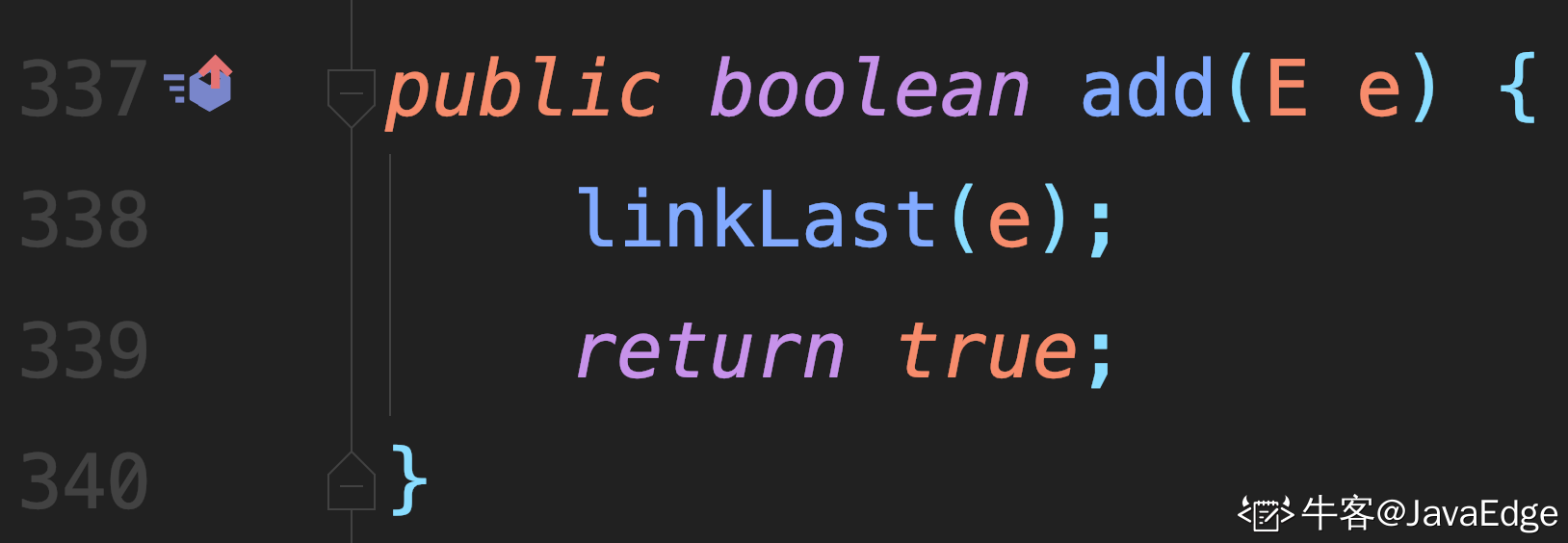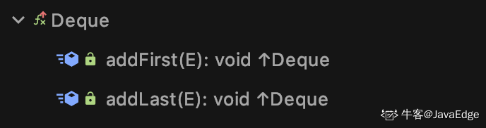 add(E e)等价于addLast(E e),因为 LinkedList 实现了 Deque 接口.