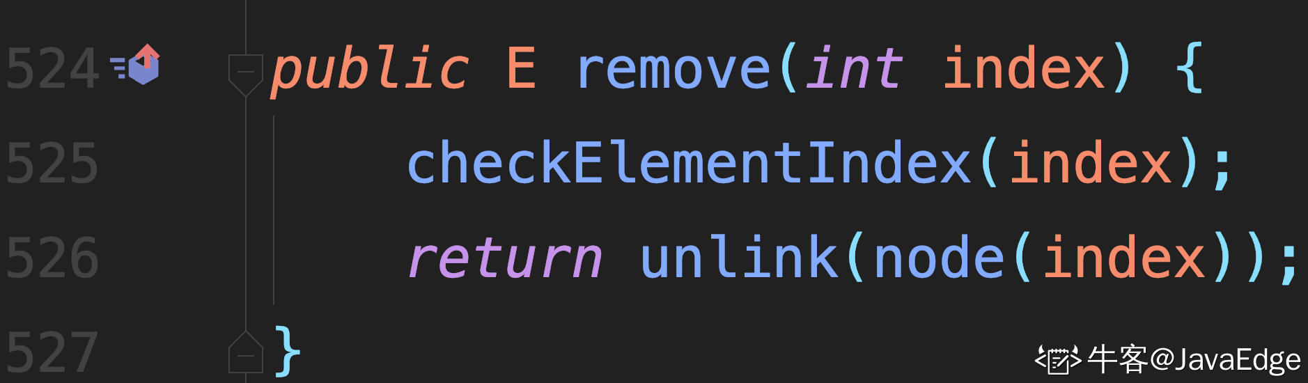 检验index是否合法.如果删除成功,返回删除的节点。 具体实现在unlink