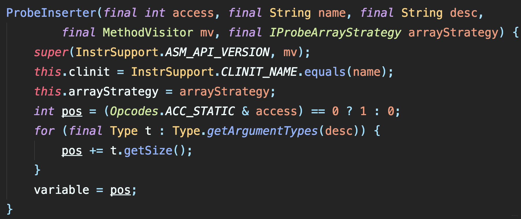 final ClassVisitor visitor = new ClassProbesAdapter( new ClassInstrumenter(strategy, writer), true);