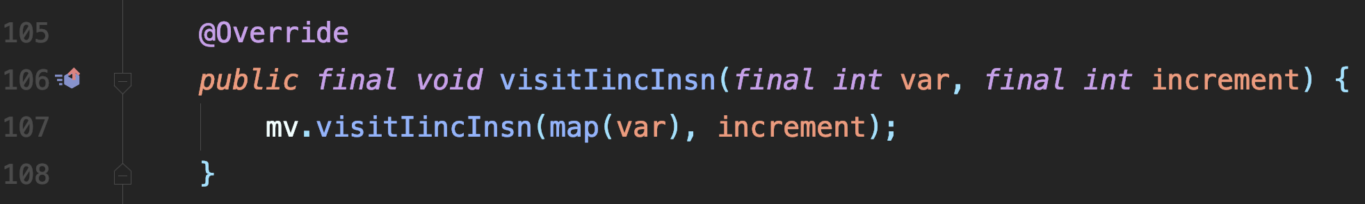 探针代码的最大堆栈大小为3,这可以增加到原始堆栈大小,具体取决于探针位置。 访问者堆栈大小是绝对最大值,因为当堆栈大小为空时,访问者代码会在每种方法的开头插入。