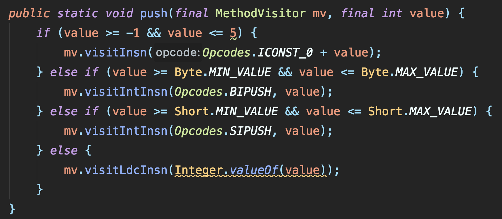 取自org.objectweb.asm.commons.GeneratorAdapter#push(int)的实现