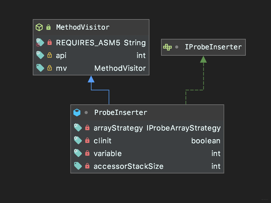 检索类型内每个方法的探针数组实例的策略。 这种抽象是必需的,因为我们需要根据所检测的类型是类还是接口来遵循不同的策略。