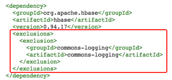 <dependency> <groupId>org.springframework</groupId> <artifactId>spring-core</artifactId> <exclusions> <exclusion> <groupId>commons-logging</groupId> <artifactId>commons-logging</artifactId> </exclusion> </exclusions>