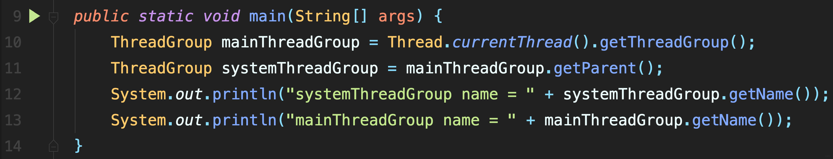 tg = Thread.currentThread ().getThreadGroup ();