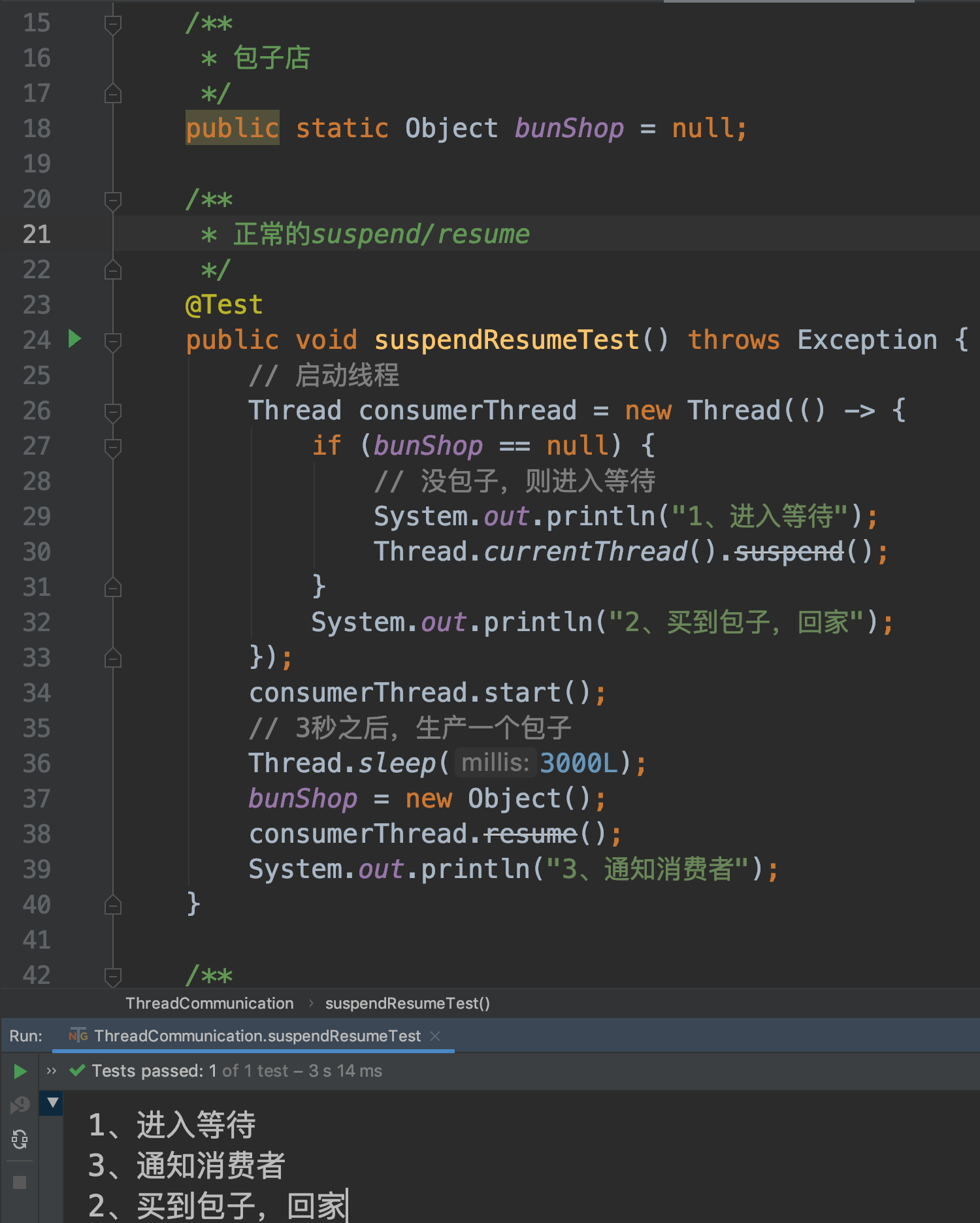 作用:调用suspend挂起目标线程,通过resume可以恢复线程执行