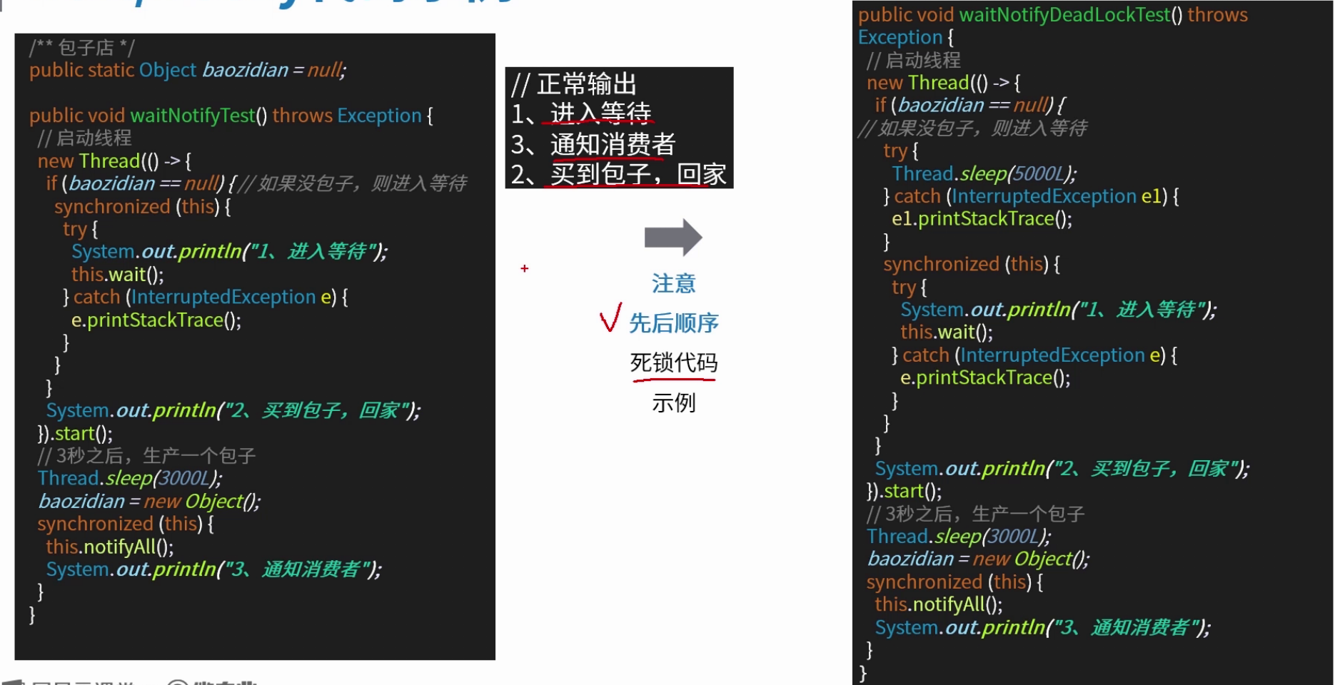 虽然wait会自动解锁,但是对顺序有要求,如果在notify被调用之后, 才开始wait方法的调用,线程会永远处于WAITING状态。