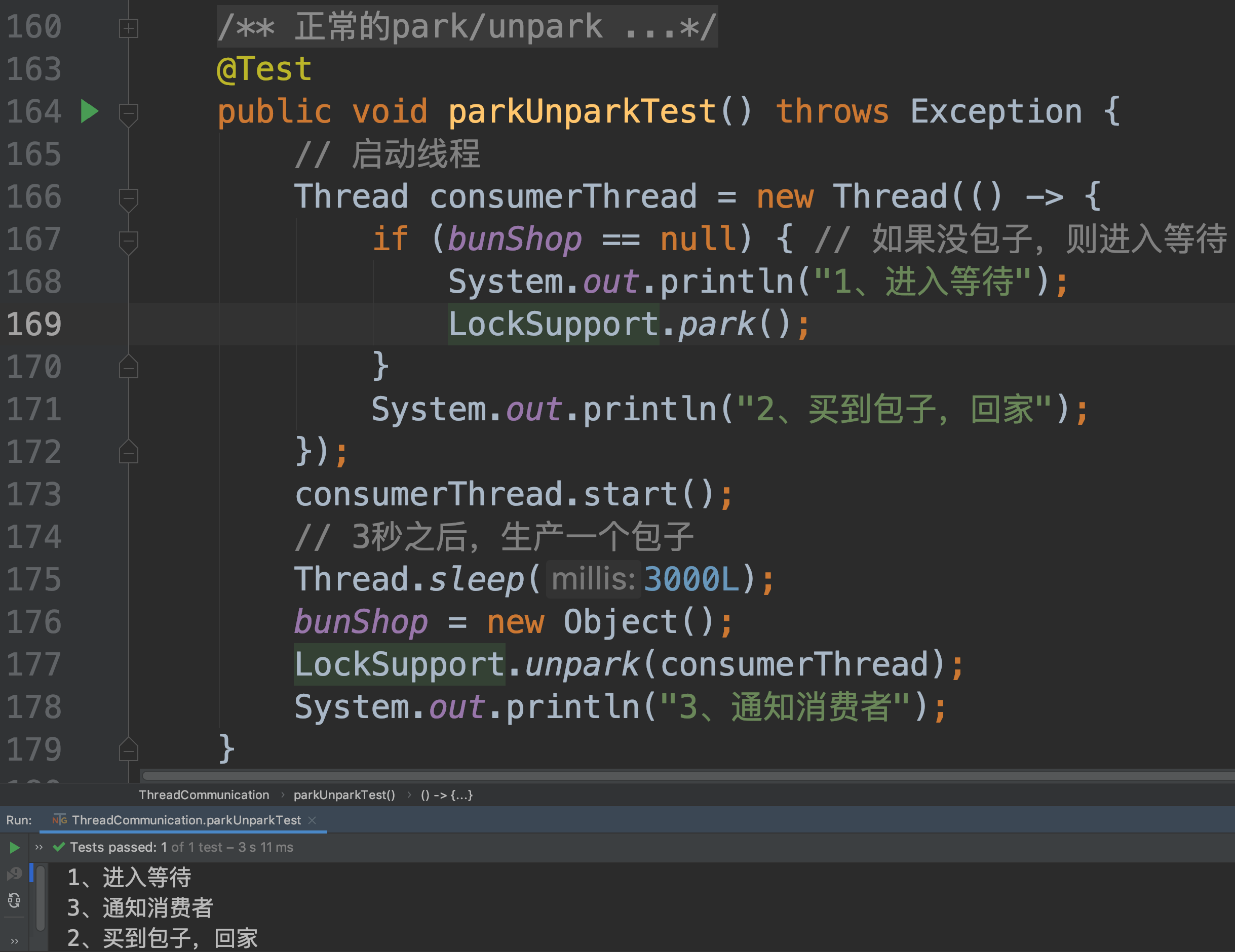 线程调用park则等待“许可”,unpark方法为指定线程提供“许可(permit)” 。