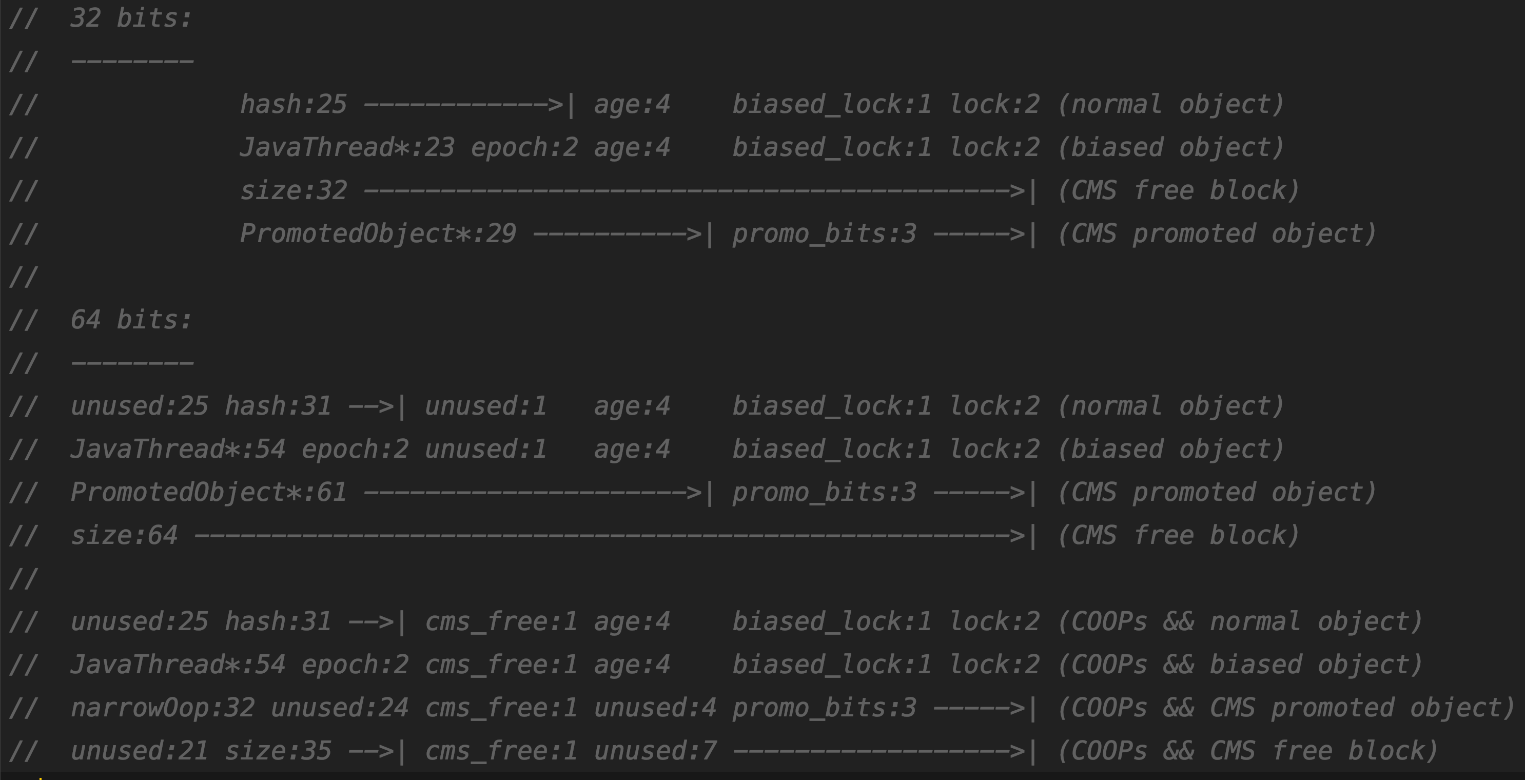 _mark是一个markOop实例,它描述了一个对象的头信息,用于存储对象的运行时记录信息,如哈希值、GC分代年龄、锁状态标志、线程持有的锁、偏向线程ID、偏向时间戳等
