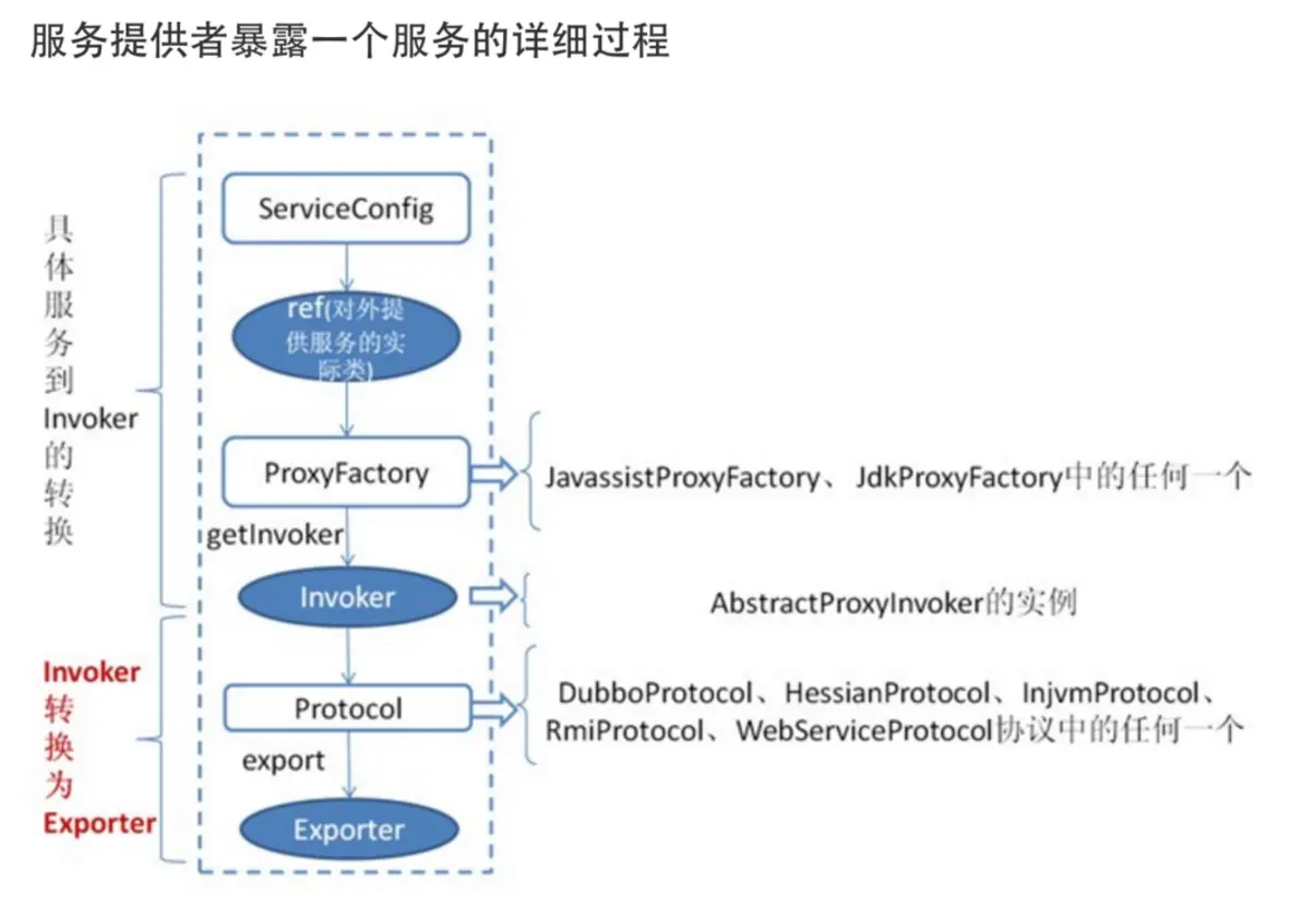 Dubbo 处理服务暴露的关键在 Invoker 转换到 Exporter 的过程