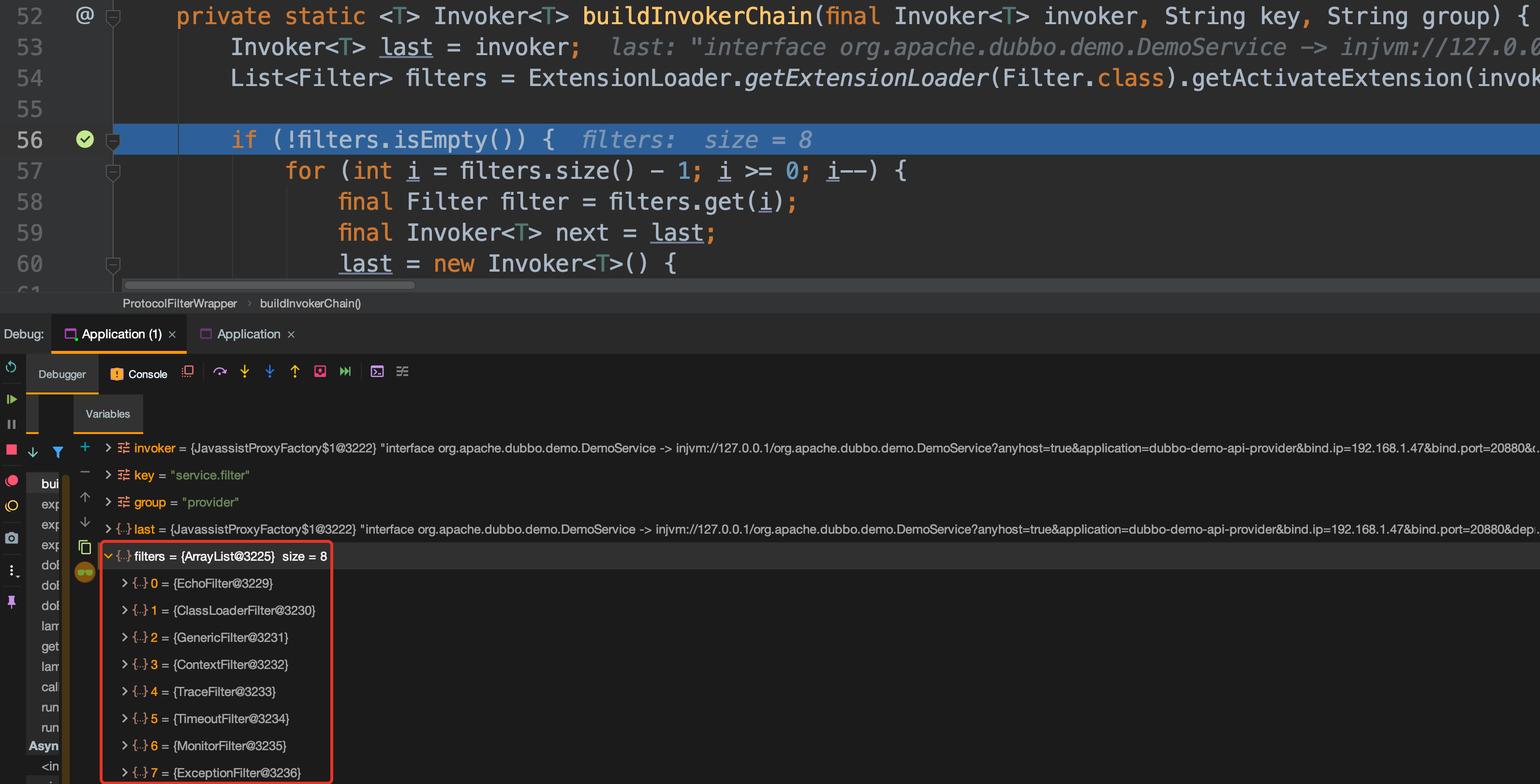 在7中,做的是过滤器操作, dubbo默认的过滤器是8个