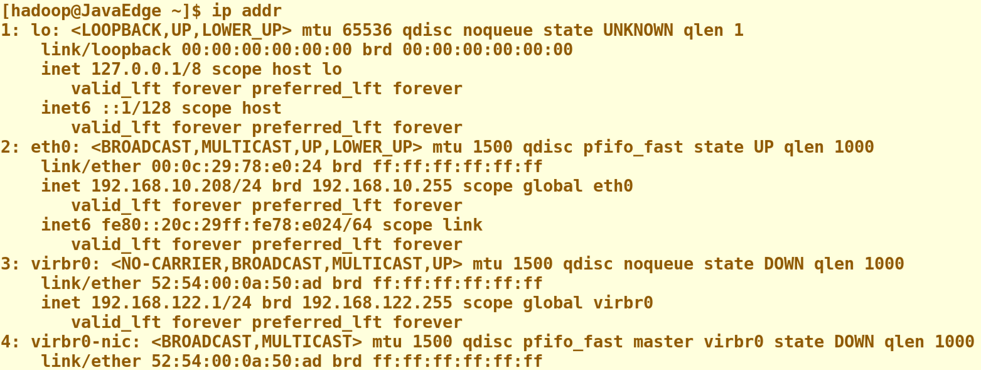- 运行ip addr。不出意外,应该会输出下面的内容