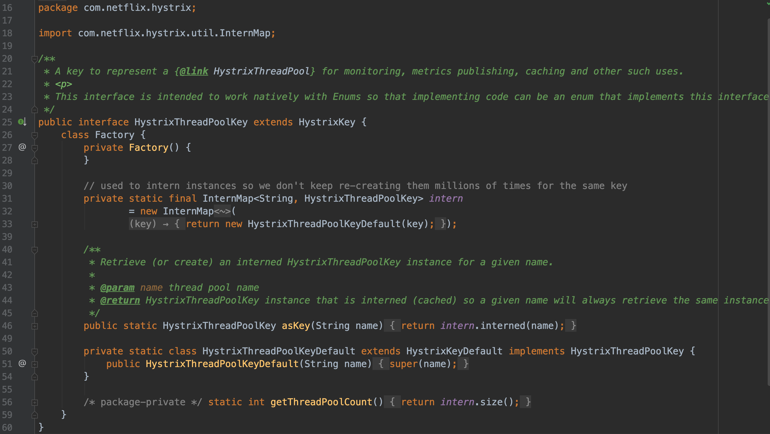 ThreadPoolKey代表了一个HystrixThreadPool,用来进行统一监控,统计,缓存
