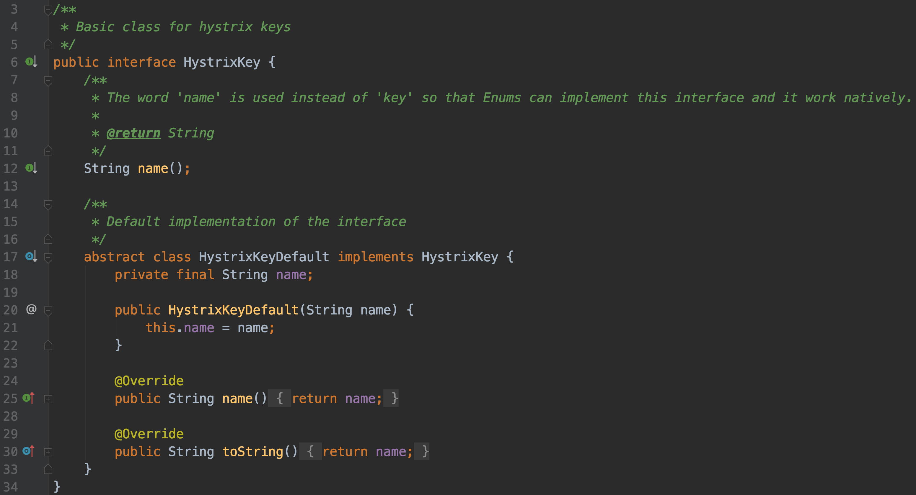 public CommandHelloWorld(String name) { super(Setter.withGroupKey(HystrixCommandGroupKey.Factory.asKey("ExampleGroup")) .andCommandKey(HystrixCommandKey.Factory.asKey("HelloWorld")) .andThreadPoolKey(HystrixThreadPoolKey.Factory.asKey("HelloWorldPool"))); this.name = name;