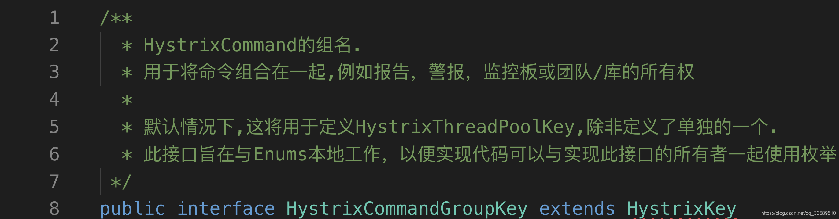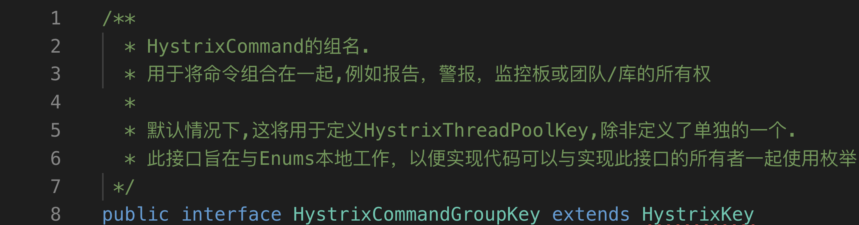 代表了一类command,代表底层的依赖服务的一个接口 代表了某一个底层的依赖服务,合理,一个依赖服务可能会暴露出来多个接口,每个接口就是一个command key