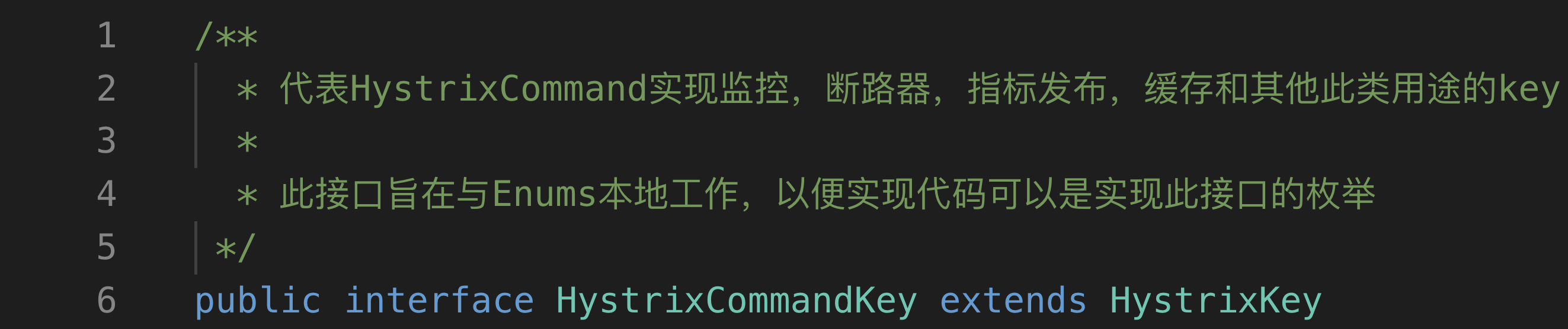代表了某一个底层的依赖服务,合理,一个依赖服务可能会暴露出来多个接口,每个接口就是一个command key 代表了某一个底层的依赖服务,合理,一个依赖服务可能会暴露出来多个接口,每个接口就是一个command key