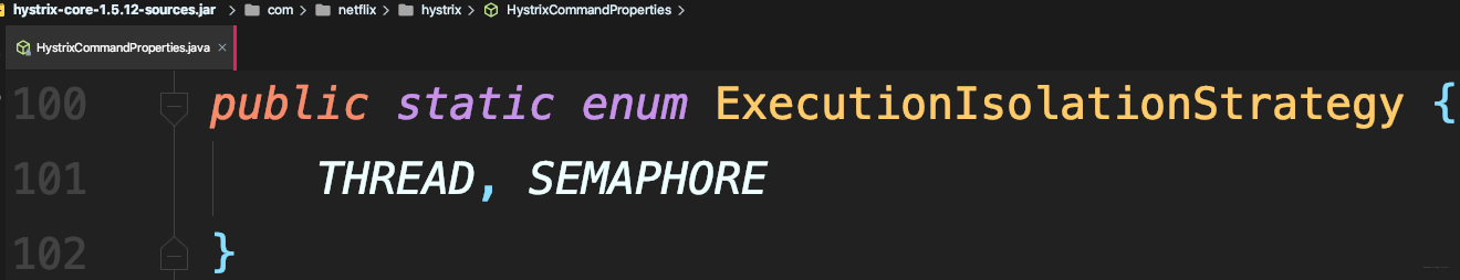 HystrixCommandProperties.Setter() .withExecutionIsolationStrategy(ExecutionIsolationStrategy.THREAD)