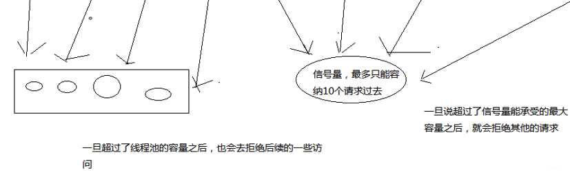 此时如果用线程池,线程一般不会太多,可能撑不住高并发。要撑住,可能要耗费大量线程资源,那么就用信号量,来限流保护。