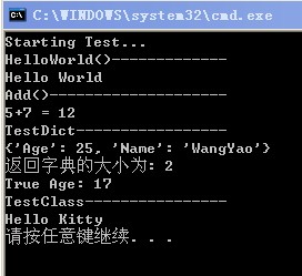 | #include <iostream> #include <Python.h> using namespace std; void HelloWorld(); void Add(); void TestTransferDict(); void TestClass(); int main() { cout << "Starting Test..." << endl; cout << "HelloWorld()-------------" << endl; HelloWorld(); cout << "Add()--------------------" << endl; Add(); cout << "TestDict-----------------" << endl; TestTransferDict(); cout << "TestClass----------------" << endl; TestClass(); system("pause"); return 0; } //调用输出"Hello World"函数 void HelloWorld() { Py_Initialize(); //使用python之前,要调用Py_Initialize();这个函数进行初始化 PyObject * pModule = NULL; //声明变量 PyObject * pFunc = NULL; //声明变量 pModule =PyImport_ImportModule("Test001"); //这里是要调用的Python文件名 pFunc= PyObject_GetAttrString(pModule, "HelloWorld"); //这里是要调用的函数名 PyEval_CallObject(pFunc, NULL); //调用函数,NULL表示参数为空 Py_Finalize(); //调用Py_Finalize,这个和Py_Initialize相对应的. } //调用Add函数,传两个int型参数 void Add() { Py_Initialize(); PyObject * pModule = NULL; PyObject * pFunc = NULL; pModule =PyImport_ImportModule("Test001"); //Test001:Python文件名 pFunc= PyObject_GetAttrString(pModule, "add"); //Add:Python文件中的函数名 //创建参数: PyObject *pArgs = PyTuple_New(2); //函数调用的参数传递均是以元组的形式打包的,2表示参数个数 PyTuple_SetItem(pArgs, 0, Py_BuildValue("i", 5));//0---序号 i表示创建int型变量 PyTuple_SetItem(pArgs, 1, Py_BuildValue("i", 7));//1---序号 //返回值 PyObject *pReturn = NULL; pReturn = PyEval_CallObject(pFunc, pArgs); //调用函数 //将返回值转换为int类型 int result; PyArg_Parse(pReturn, "i", &result); //i表示转换成int型变量 cout << "5+7 = " << result << endl; Py_Finalize(); } //参数传递的类型为字典 void TestTransferDict() { Py_Initialize(); PyObject * pModule = NULL; PyObject * pFunc = NULL; pModule =PyImport_ImportModule("Test001"); //Test001:Python文件名 pFunc= PyObject_GetAttrString(pModule, "TestDict"); //Add:Python文件中的函数名 //创建参数: PyObject *pArgs = PyTuple_New(1); PyObject *pDict = PyDict_New(); //创建字典类型变量 PyDict_SetItemString(pDict, "Name", Py_BuildValue("s", "WangYao")); //往字典类型变量中填充数据 PyDict_SetItemString(pDict, "Age", Py_BuildValue("i", 25)); //往字典类型变量中填充数据 PyTuple_SetItem(pArgs, 0, pDict);//0---序号 将字典类型变量添加到参数元组中 //返回值 PyObject *pReturn = NULL; pReturn = PyEval_CallObject(pFunc, pArgs); //调用函数 //处理返回值: int size = PyDict_Size(pReturn); cout << "返回字典的大小为: " << size << endl; PyObject *pNewAge = PyDict_GetItemString(pReturn, "Age"); int newAge; PyArg_Parse(pNewAge, "i", &newAge); cout << "True Age: " << newAge << endl; Py_Finalize(); } //测试类 void TestClass() { Py_Initialize(); PyObject * pModule = NULL; PyObject * pFunc = NULL; pModule =PyImport_ImportModule("Test001"); //Test001:Python文件名 pFunc= PyObject_GetAttrString(pModule, "TestDict"); //Add:Python文件中的函数名 //获取Person类 PyObject *pClassPerson = PyObject_GetAttrString(pModule, "Person"); //创建Person类的实例 PyObject *pInstancePerson = PyInstance_New(pClassPerson, NULL, NULL); //调用方法 PyObject_CallMethod(pInstancePerson, "greet", "s", "Hello Kitty"); //s表示传递的是字符串,值为"Hello Kitty" Py_Finalize(); } |