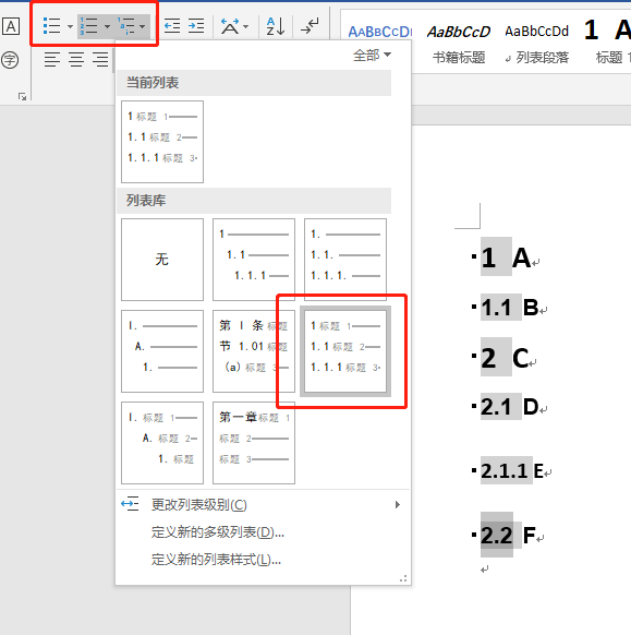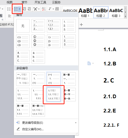 2.开始 编号栏第2个,下拉选择多级编号加标题那个,