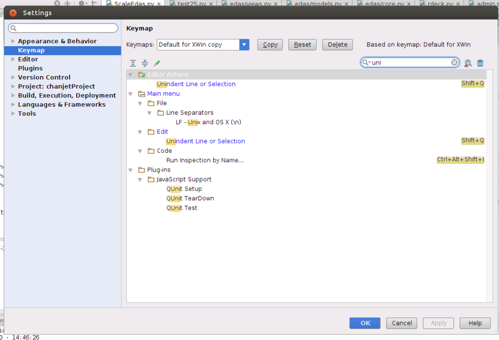 "Unindent Line or Selection" 这个就是tab+shift对应的取消缩进快捷键,改了他即可。