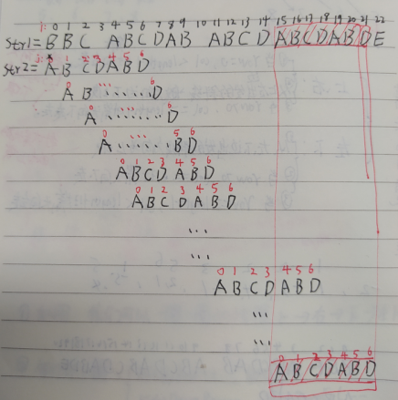 有一个字符串 str1= “BBC ABCDAB ABCDABCDABDE”,和一个子串 str2=“ABCDABD”
