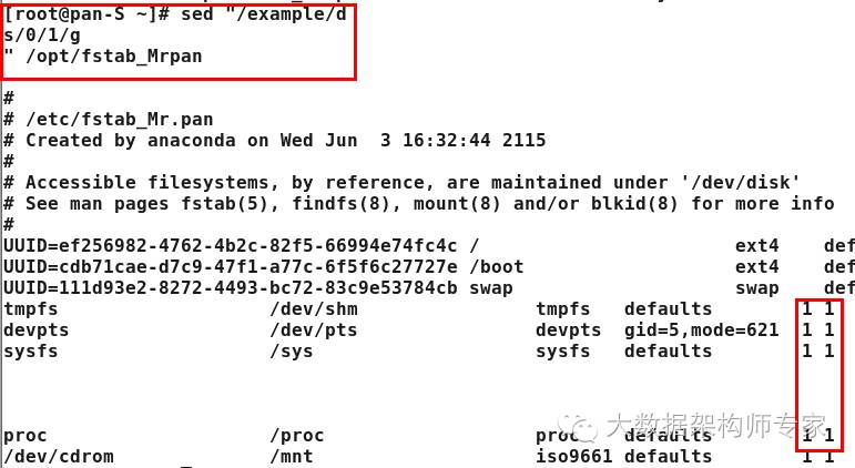 [root@pan-S~]# sed -i "3s/fstab/fstab_Mr.pan/g" /opt/fstab_Mrpan