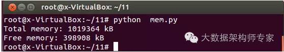 可以使用 Python 命令运行脚本 mem.py 结果见图 3。 # Python mem.py