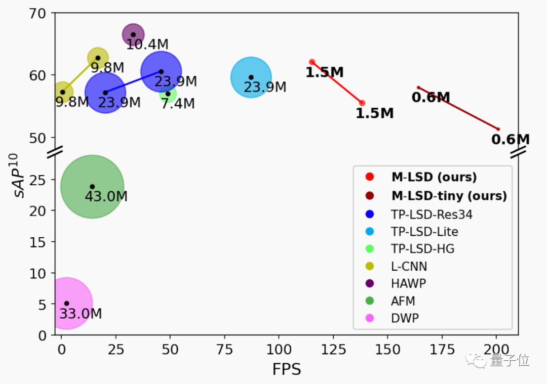 其中,M-LSD-tiny最快能以56.8FPS和48.6FPS的速度在手机上实时运行。
