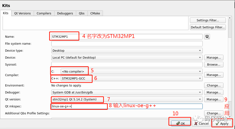 交叉编译环境配置主要对qmake、g++、kits进行配置。