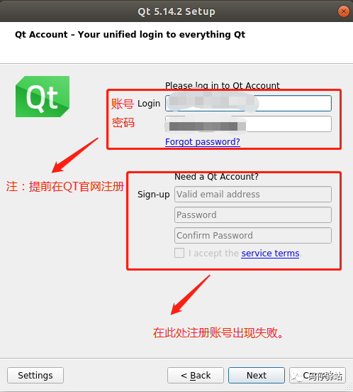 注:在安装过程中需要QT账号,可在安装前在QT官网进行注册