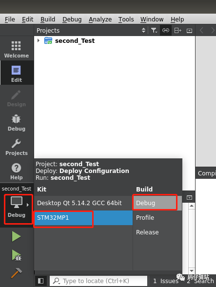 新建demo例程,进行验证。选择交叉编译kit,build工程,编译输出的可执行文件放到开发板执行,可在屏幕上看到例程画面。