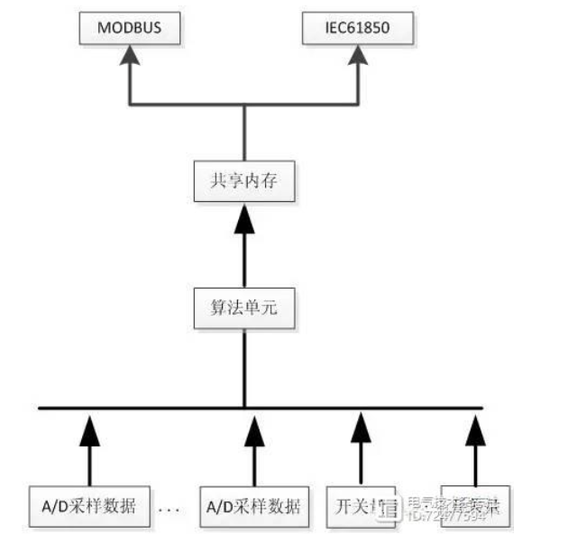 本设计使用的内核版本为linux2.6.32,并在其中扩展了串口驱动。应用程序实现多种通信规约,支持ModbusRTU和IEC61850规约上送。CPU将采集到的信号经过算法处理后填入共享内存,以供各规约模块封装报文。